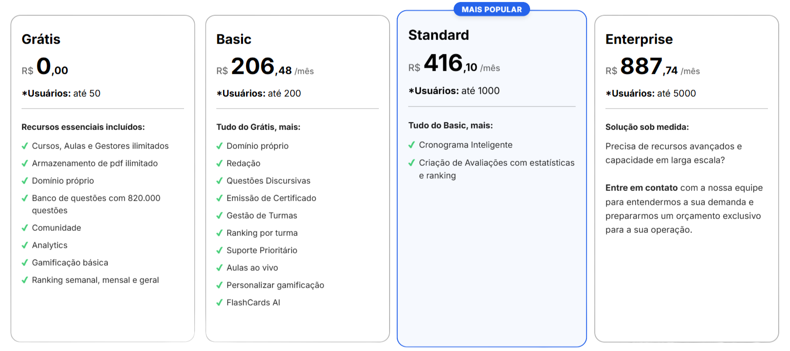 Nota: os valores e limites exatos de cada plano podem variar. Consulte sempre a página oficial de planos para informações atualizadas.